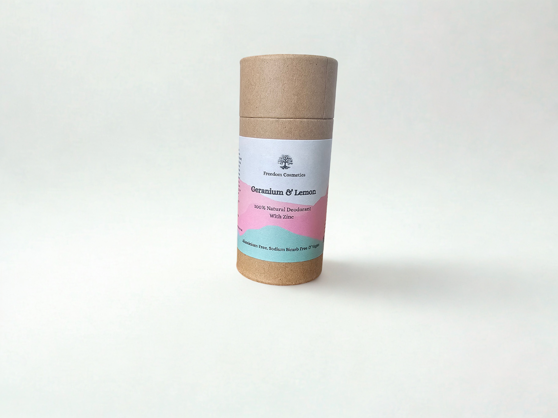 Our Geranium & Lemon Natural Zinc Deodorant blends uplifting citrus and floral notes with gentle, aluminum-free odor protection. Featuring non-nano zinc oxide, it neutralizes odor-causing bacteria while being kind to sensitive skin.